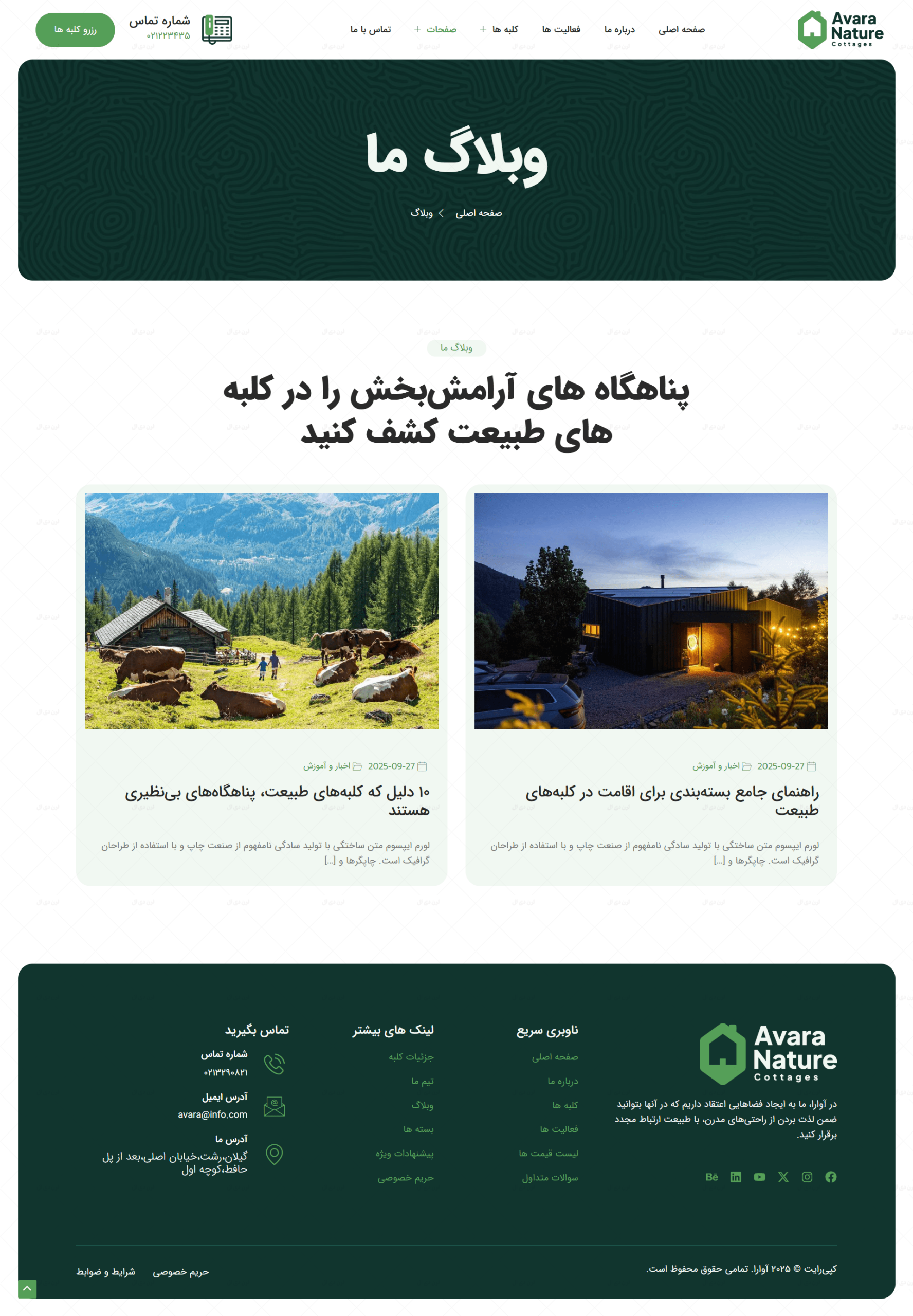 قالب سایت آماده کرایه کلبه های جنگلی آوارا – نسخه اورجینال و راست‌ چین | Avara Nature Template قالب سایت آماده کرایه کلبه های جنگلی آوارا – نسخه اورجینال و راست‌ چین | Avara Nature Template