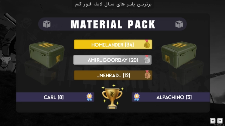 این اسکوربورد به‌صورت اختصاصی برای MTA طراحی شده و می‌تواند کاملاً شخصی‌سازی شود تا با سبک و نیازهای سرور شما سازگار باشد.