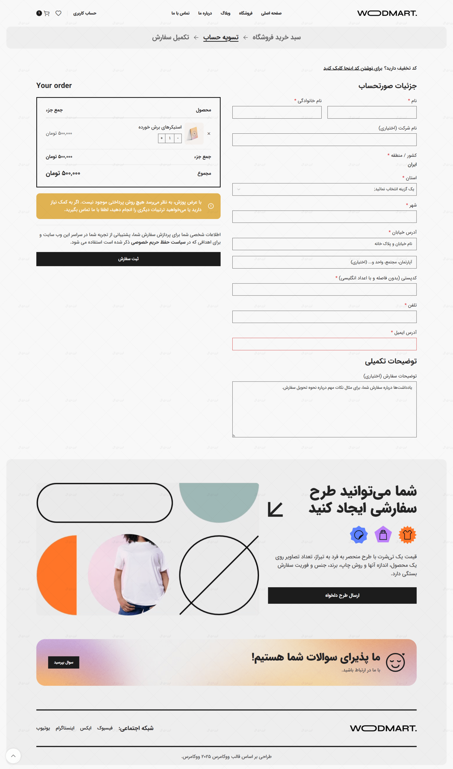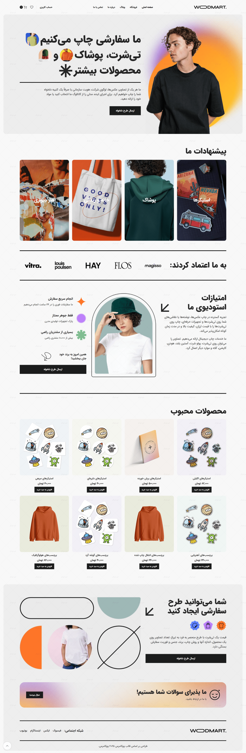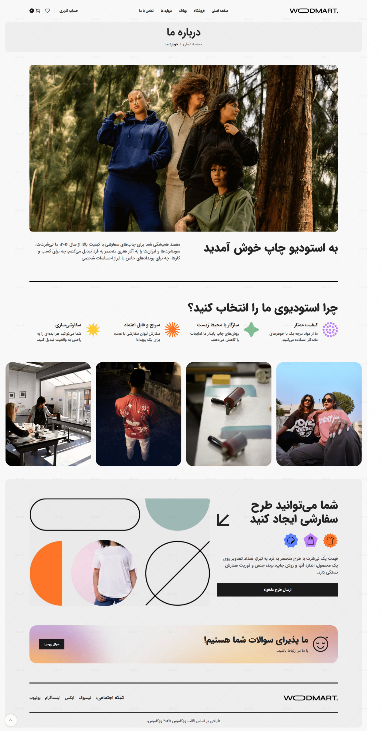 قالب فروشگاه تی شرت وودمارت ایده آل‌ترین دمو برای پوشاک