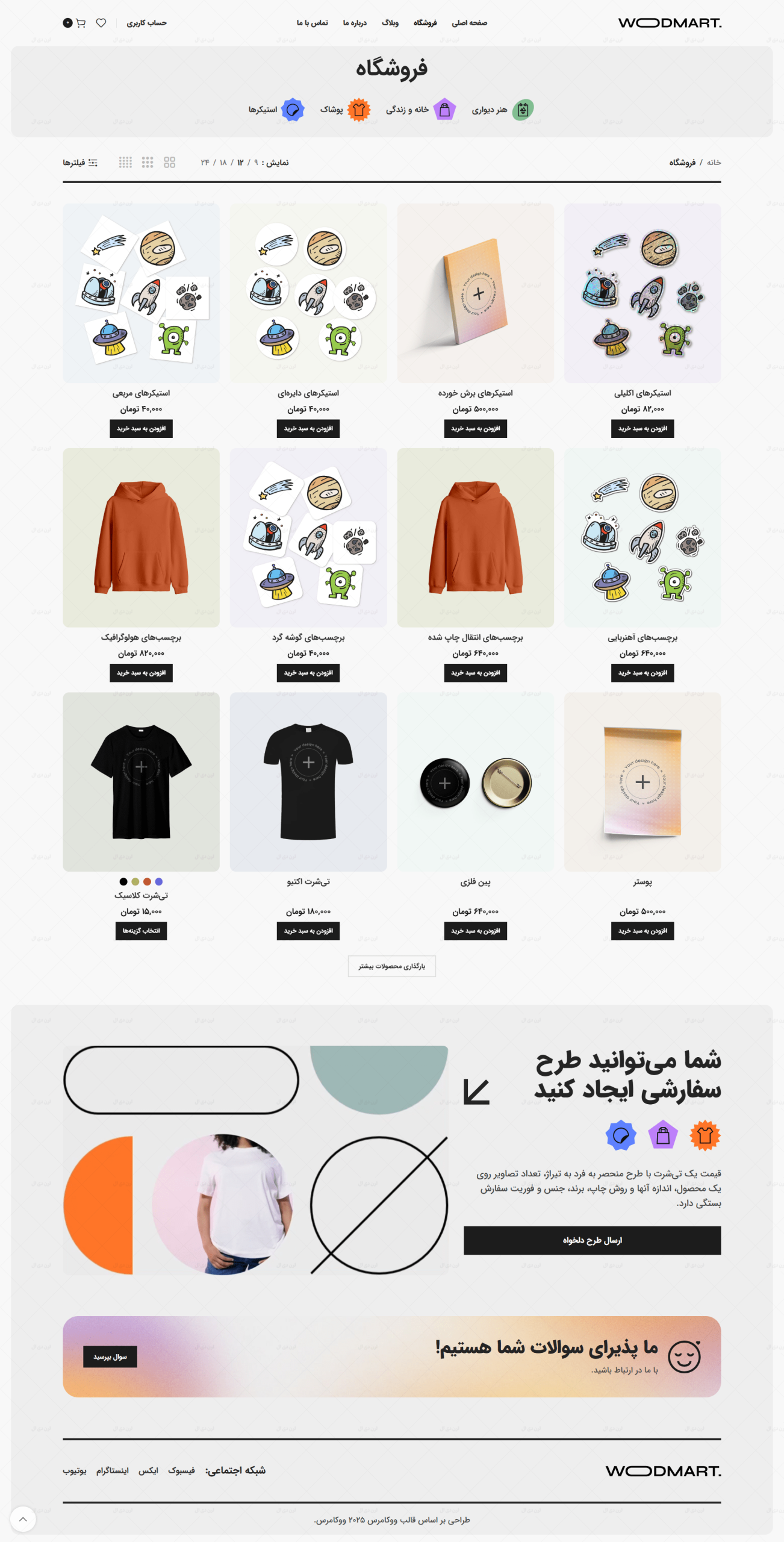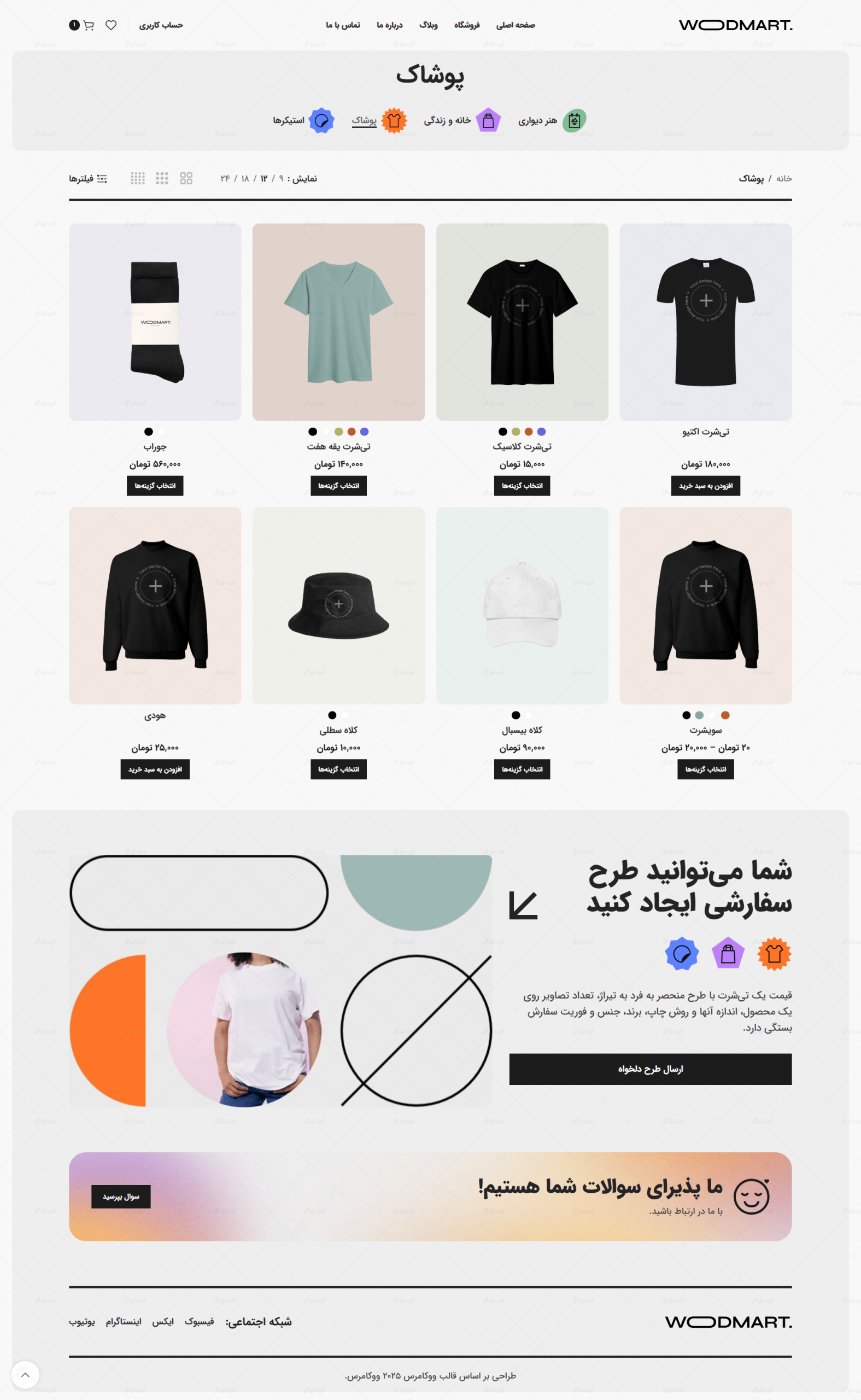 قالب فروشگاه تی شرت وودمارت ایده آل‌ترین دمو برای پوشاک قالب فروشگاه تی شرت وودمارت ایده آل‌ترین دمو برای پوشاک